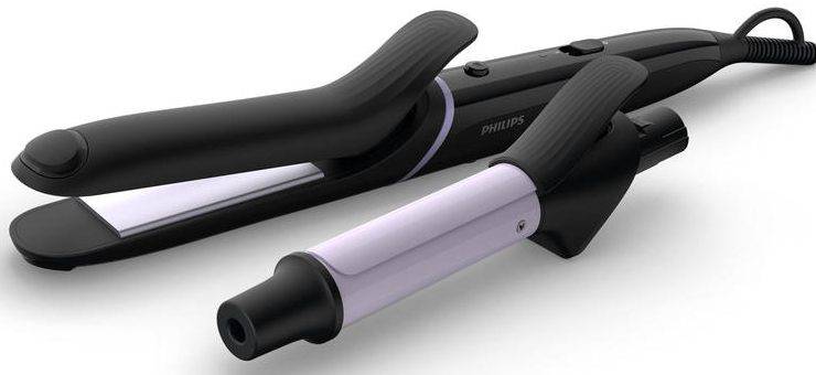 Мультистайлер для волос Филипс с 5 насадками поможет создать дневной или сложный вечерний образ. В комплекте идет гид по стилю, который подскажет более 10 вариантов применения прибора. С технологией OneClick насадки меняются одним движением. Пластины нагреваются до 210 градусов за 1 минуту, что сокращает время укладки. Шнур удобно вращается и не путается под ногами.Девушки пишут в отзывах, что стайлер справляется даже с непослушными волосами, а созданные локоны держатся довольно долго. Благодаря термостойкому наконечнику пряди удобно накручивать на плойку, придерживая ее и не боясь ожогов.