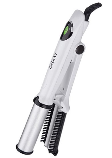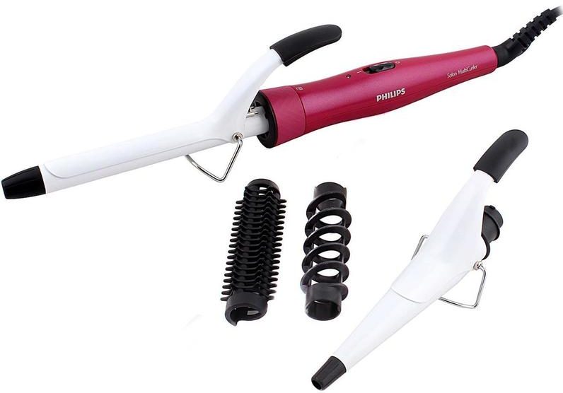 Надежный мультистайлер с насадками, который можно купить в большинстве магазинов техники. В комплекте идут выпрямляющие и гофрирующие пластины, щетка для укладки непослушных локонов, спираль, плоская плойка, щипцы большого и маленького диаметра для мягких волос. Корпус имеет матовое противоскользящее покрытие, благодаря которому пользоваться стайлером еще удобнее. Фирменная технология смены насадок в одно движение и быстрый нагрев экономят время на укладку. Для удобного подвешивания в конструкции есть проушина. А шарнирное соединение с кабелем не дает ему путаться или заламываться.