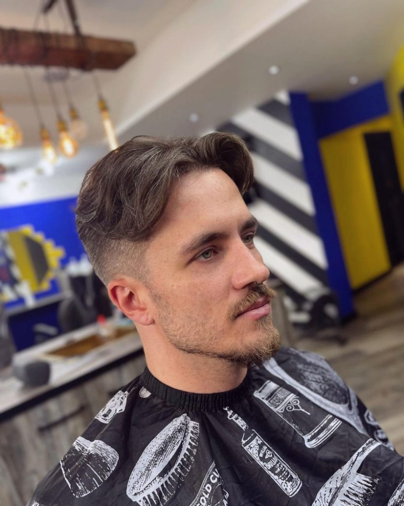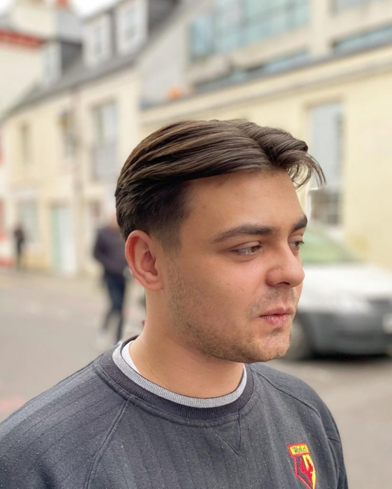 Это дерзкий вариант для мужчин, которые не боятся рисковать и привлекать к себе внимание. Стрижка требует ухода и ежедневной укладки из-за отсутствия дополнительной опоры на виски