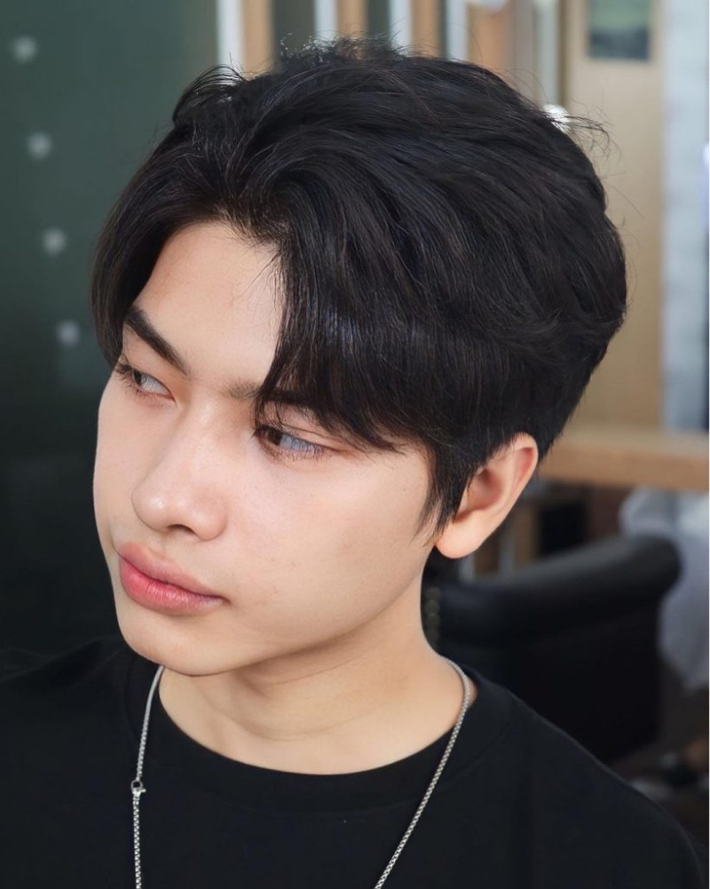 The middle part for men is a classic hairstyle where the hair on top is parted in the center to achieve a defined look. While middle part hairstyles are not all styled with curtain cuts, the haircut styles are similar. You’ll need to grow your hair out for both since the middle parting can only be accomplished with medium length to longer hair.