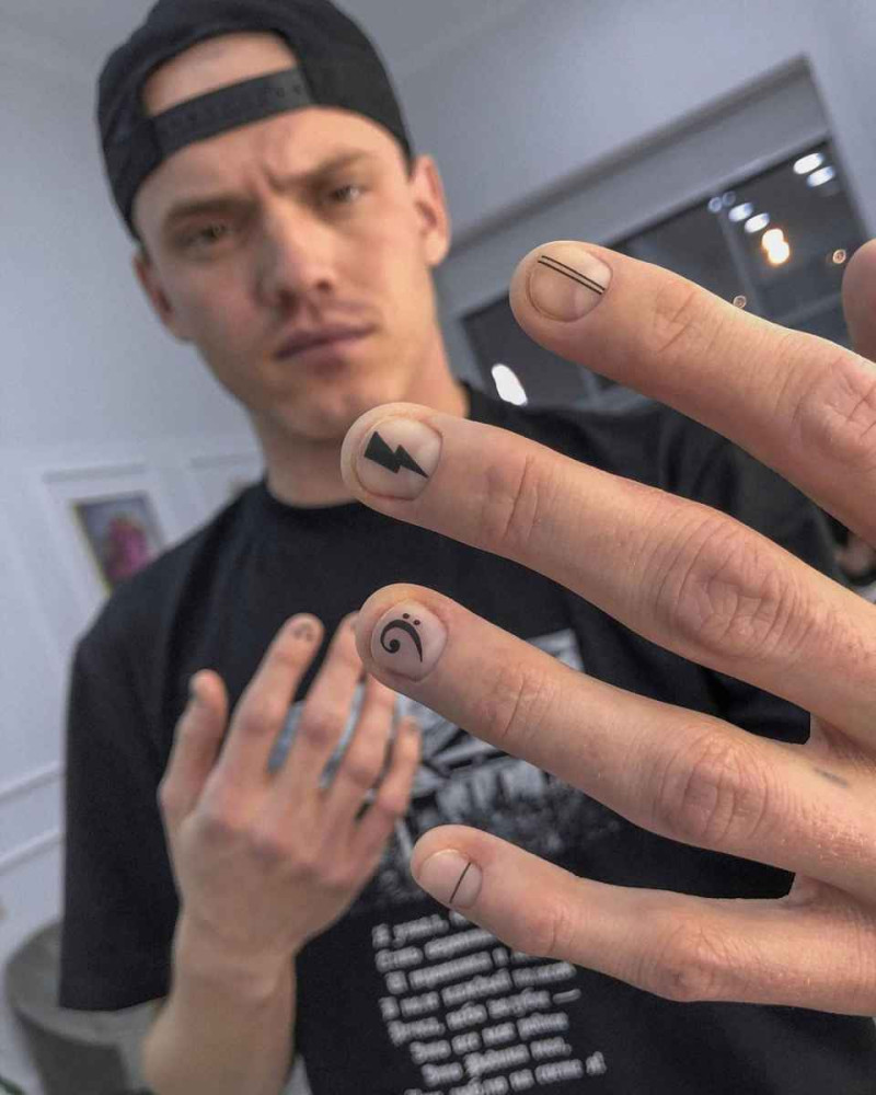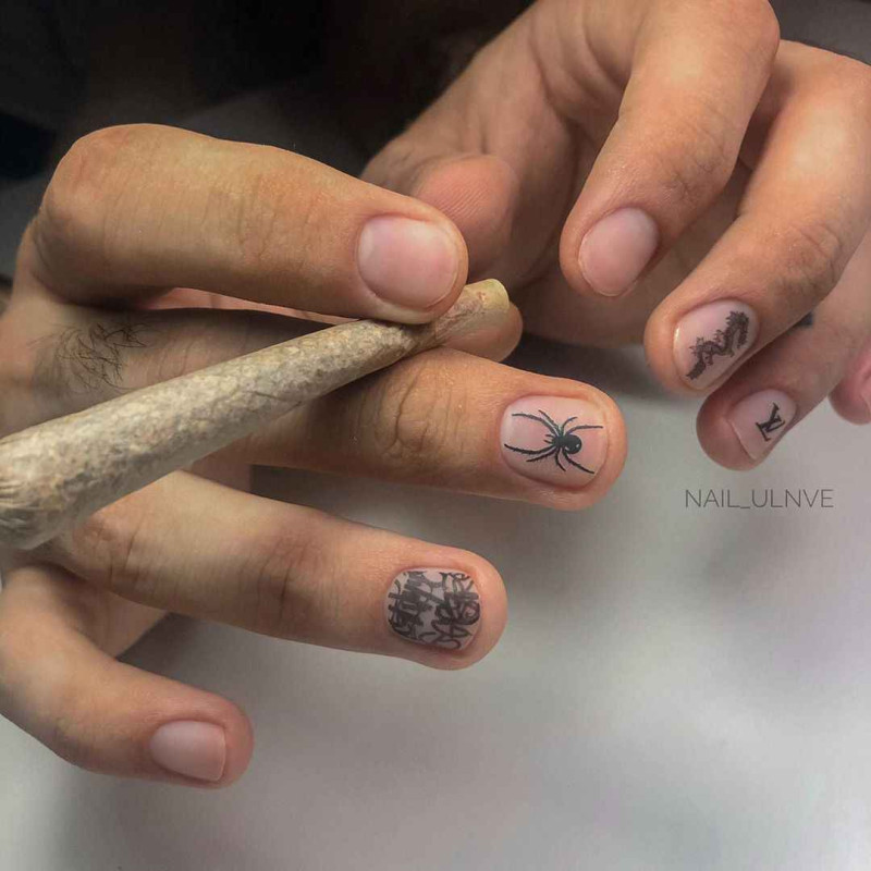 Мужской маникюр с черными рисунками