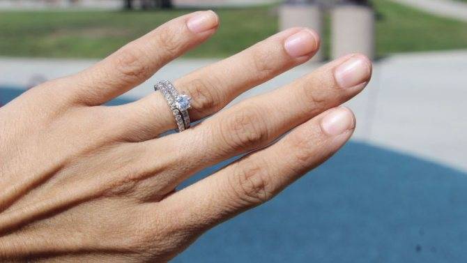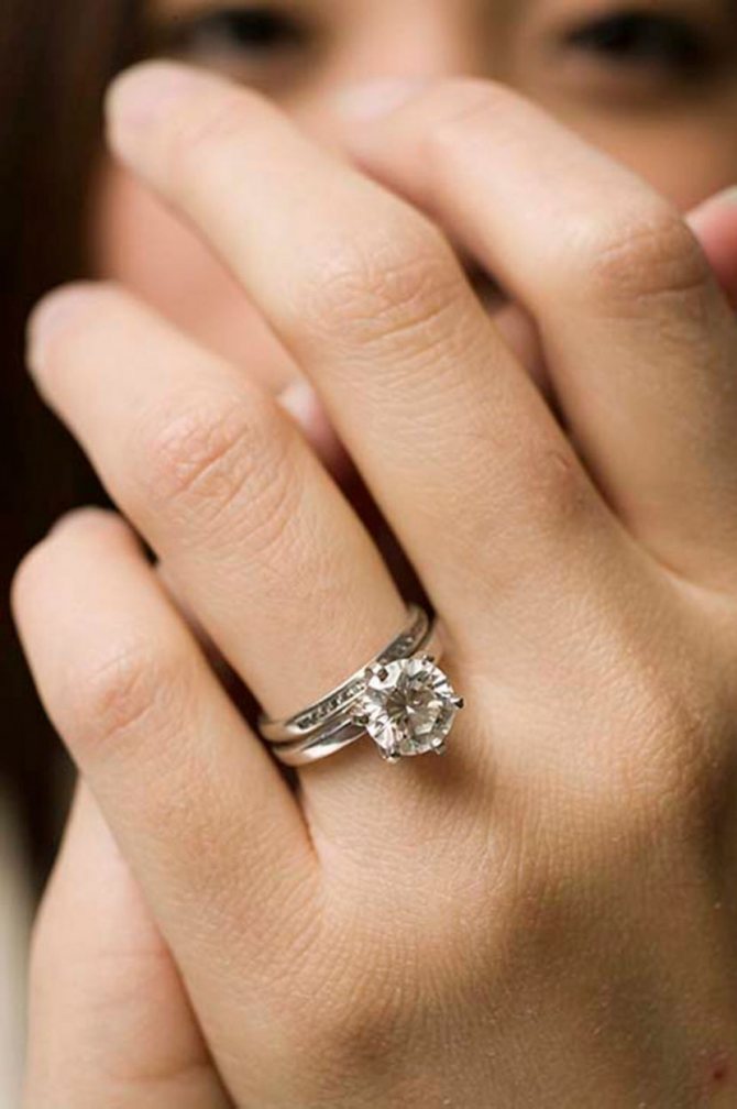 Некоторые девушки носят на безымянном пальце вместе с обручальным кольцом и кольцо, подаренное на помолвку, чтобы помнить и не забывать о романтическом периоде отношений с мужем.