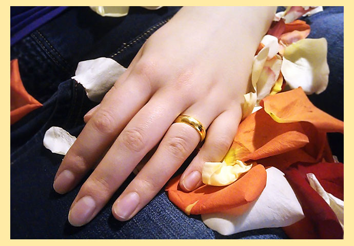 Как считают учёные, безымянный палец руки имеет астральную связь с Солнцем, Луной и Аполлоном (в каждой стране это принято называть по-разному), поэтому колечко на этом пальце даёт возможность человеку раскрыть весь его энергетический потенциал, все сокрытые духовные и творческие начала, способность самореализоваться.
