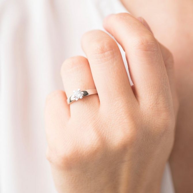 - Если в отделке колечка использован мелкий бриллиант, сложно подчеркнуть значимость торжественного события. Идеальный вариант – бриллиант средних размеров. На каком из пальцев носится помолвочное кольцо? На безымянном.