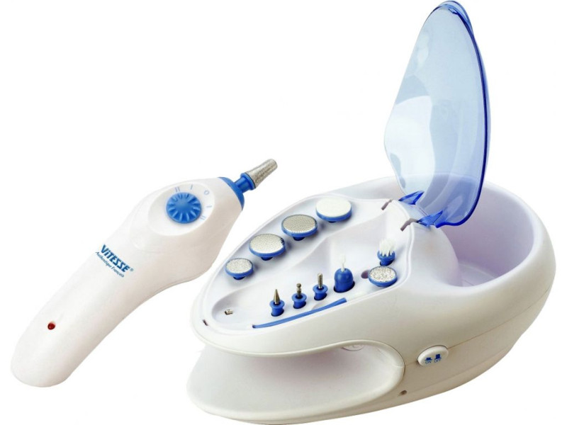 Это комплект инструментов для ухода за ногтями, который работает от сети или на батарейках. В такой набор входят специальные насадки, необходимые для создания аккуратного и качественного маникюра или педикюра.