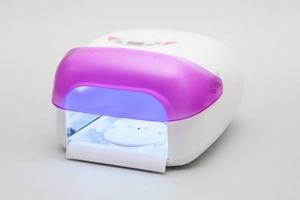 Наиболее распространёнными являются ультрафиолетовые лампы. Такие лампы полимеризуют и гель. Подробнее про то, какой гель для наращивания ногтей лучше читайте в данном материале.