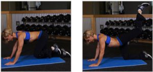 - Произвести 12-14 быстрых отведений левой ноги назад.