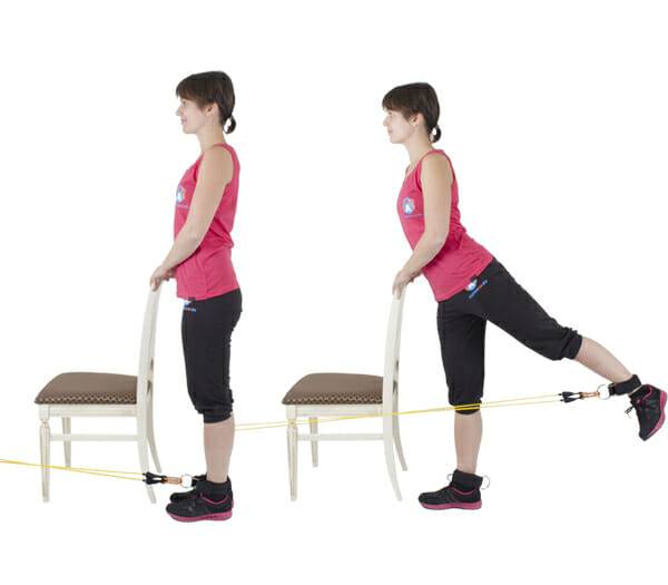 - Надеть кольцо резинки на правую голень и выполнить упражнение еще раз.