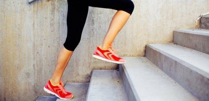 Это упражнение можно делать в подъезде, если не смущают соседи. Возьмите гантели и ходите вверх по лестнице, ступая на носок. Можно перешагивать через ступеньку: в этом случае также будут работать ягодичные мышцы, квадрицепсы и задняя поверхность бедра. Упражнение следует выполнять 15-20 минут, до полного отказа мышц. Здесь достаточно одного подхода.