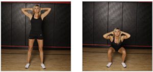 - Приседания на корточках. Сразу хочется предупредить начинающих фитоняшек, что это движение возможно для вас окажется сложным. Однако по мере прогресса вы сможет начать его выполнять. Постарайтесь выполнить 10 повторов, а затем ежедневно добавляйте еще один. Ноги располагаются на уровне плечевых суставов, а позвоночный столб распрямлен. Из этого положения приподнимитесь на носочки, после чего выполняйте приседания.