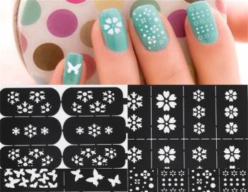 Трафареты. Их используют для рисования по шаблону, сами наклейки после окончания процедуры снимают.