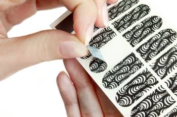 Один из наиболее популярных видов наклеек, где внутренняя сторона покрыта клеем и отлично прилипает к основе, а на внешнюю сторону нанесен красивый узор. Перед приклеиванием следует подготовить ногтевую пластину и обозначить место для размещения наклейки. Потом отсоединить элемент декора от основы и липкой стороной приложить к ногтю.