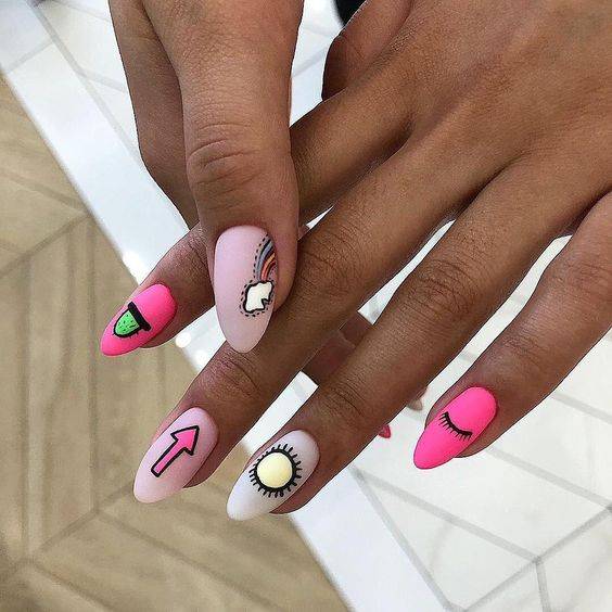 - Мини. Это маленькие рисунки, которые наносят на часть ногтя.
