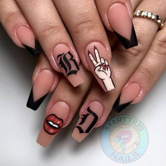 - Частичные – предусматривают заполнение лишь части ногтевого пространства и выступают в качестве символов, силуэтов и предметов, имеющих четкий контур.