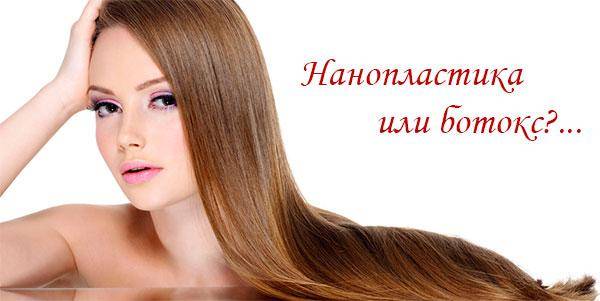 - В чём разница между нанопластикой и ботоксом, что лучше для волос? Это кардинально разные процедуры. Ботокс не распрямляет пряди, так как не влияет на дисульфидные связи, но, как и нанопластика восстанавливает повреждённые участки. Если волосы кучерявые и надо просто улучшить их состояние, без выпрямления, то больше подходит ботокс. Когда же, кроме лечения, нужна ещё гладкая укладка, тогда лучше сделать нанопластику.