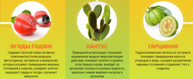 - фитоэкстракт гарцинии камбоджийской. По мнению Всемирной ассоциации диетологов, это самое полезное растение для борьбы с избыточной массой тела. Гарциния в несколько раз ускоряет процессы метаболизма, расщепляет и выводит из организма жир. Фитоэкстракт регулирует уровень глюкозы в крови, что играет большую роль в профилактике развития заболеваний;