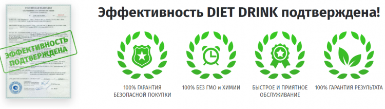 Как утверждает сам производитель, напитки Диет Дринк получили хорошую характеристику от диетологов и терапевтов, а их качество отвечает высоким стандартам специализированных средств для похудения.