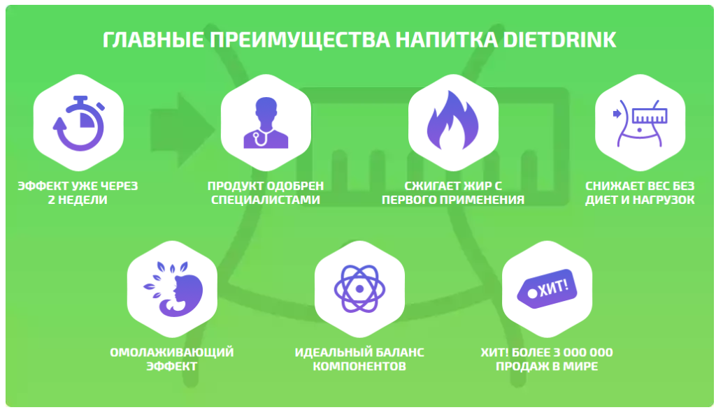 В целом Diet drink обладает еще несколькими полезными свойствами: