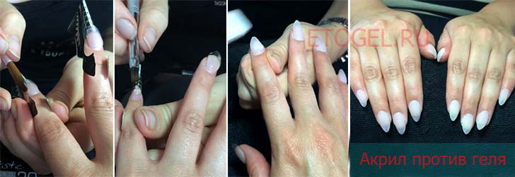 Акрил и гель предполагают использование разных технологий наращивания, у каждого из них свои плюсы и минусы.