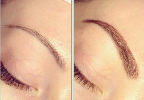 Умелые мастера при помощи фиксации отдельных синтетических или натуральных волосин восполнят недостающее волосяное покрытие по всей бровной дуге. Специалисты обязаны использовать гипоаллергенный клей, качественные материалы.