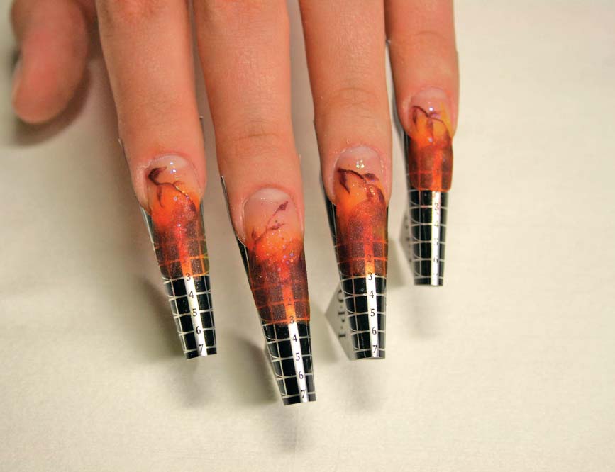 Типсы изготавливаются из пластика. Работа с ними требует определенной сноровки, ведь типс необходимо спиливать у места контакта с ногтевой пластиной и по бокам до нужного размера. Свой ноготь при такой процедуре также активно спиливается и подвергается значительному повреждению.