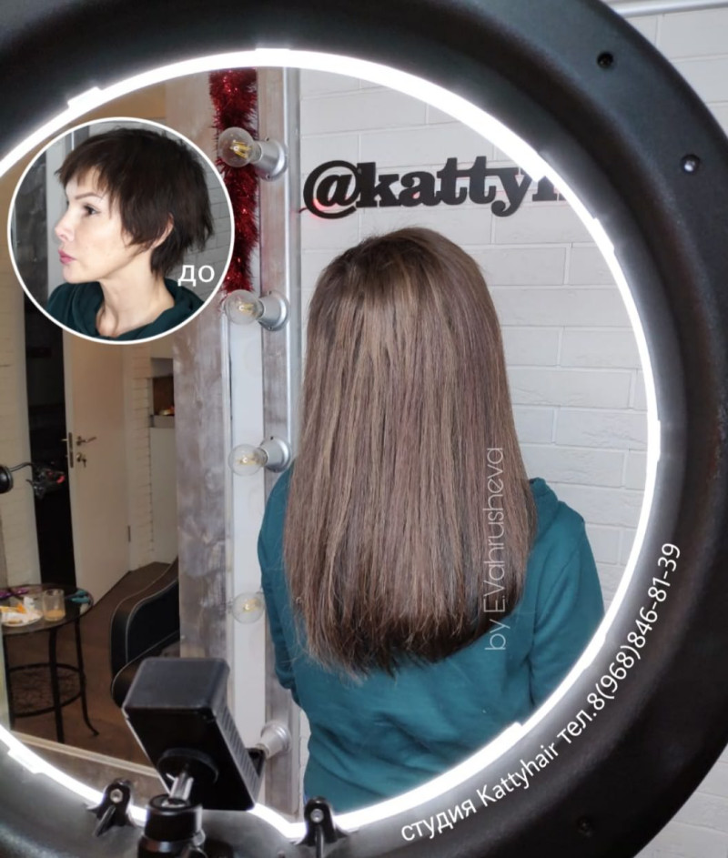 Если хочется быстро изменить имидж или подготовиться к важному мероприятию — наращивание отличный вариант. Средняя длина прекрасно подходит под разные техники, вне зависимости от типа стрижки