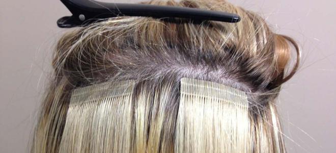 2. Ленточный метод — наиболее простой, применяется для тонких и ослабленных волос и заключается в креплении прядей при помощи специальных лент без термического воздействия.