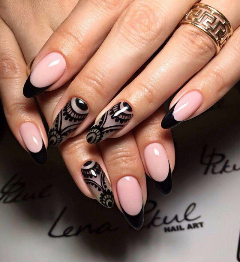 Наверное, в противовес последователям был придуман французский маникюр черного цвета. Ну что ж, все великие мастера творили без оглядки на традиции и на чужое мнение. А такой дизайн выглядит ничуть не хуже классического.