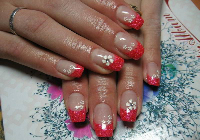 Наращивание ногтей и дизайн френч с блестками (с фото)