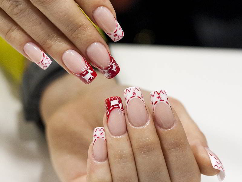 Во-первых, это френч на типсах. В данном наращивании используются либо обычные типсы и «улыбка» на ногтевом крае формируется белым (или иным цветом) с помощью соответствующей технологии наращивания ногтей (акрилом или гелем), либо френч-типсы, представляющие собой типсы с уже сформированной «улыбкой», которые крепятся на ногтевой край и далее укрепляются материалами, соответствующими способу наращивания ногтей.
