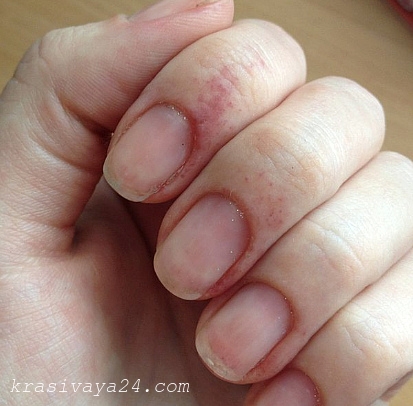 - кожа вокруг ногтевой пластины краснеет, возможны посинения;