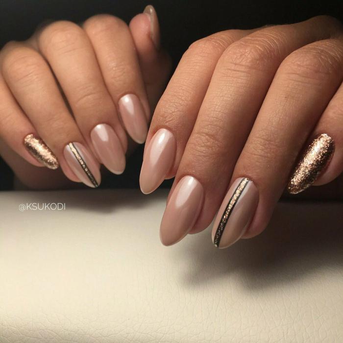 Миндальная форма считается классической, она долго не выходит из моды. Она отличается тем, что здесь нет острых углов, но кончики узкие. Контур – нечто среднее между овальным и острым.