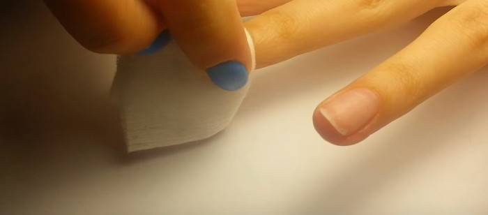 - Увлажнить кутикулу. Удалить ее вместе с остальными огрубевшими участками кожи вокруг ногтей.