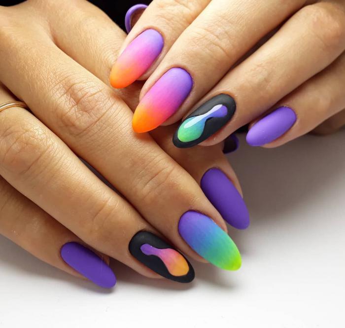 Это преимущественно молодежный дизайн ногтей: именно в юном возрасте сильна склонность к экспериментам и желание объединить то, что, казалось бы, нельзя сочетать. На фото новинки 2020 года в виде неординарного яркого и запоминающегося молодежного дизайна.