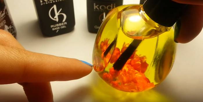 В конце процедуры наращивания обрабатывается еще кутикула. Обычно для этого пользуются маслом, которое питает и увлажняет кожу.