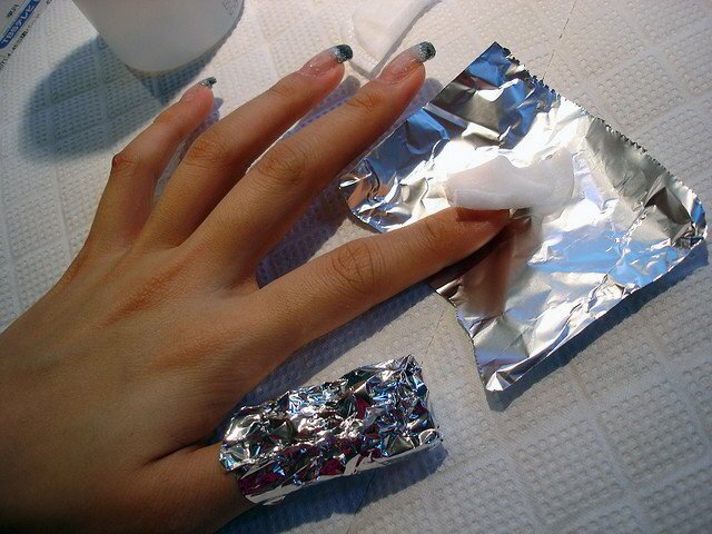 Чтобы вернуть себе родные ногти, нужно использовать ватные диски и обычный ацетон. Обмокните вату в нем и приложите к пластине. Чтобы запах не раздражал, палец можно завернуть в пищевую фольгу. Через минут десять можете убрать вату. То, что осталось, можете удалить при помощи шлифовальной пилочки небольшой жесткости. Для восстановления и укрепления ногтей после процедуры не забудьте использовать аптечные средства.