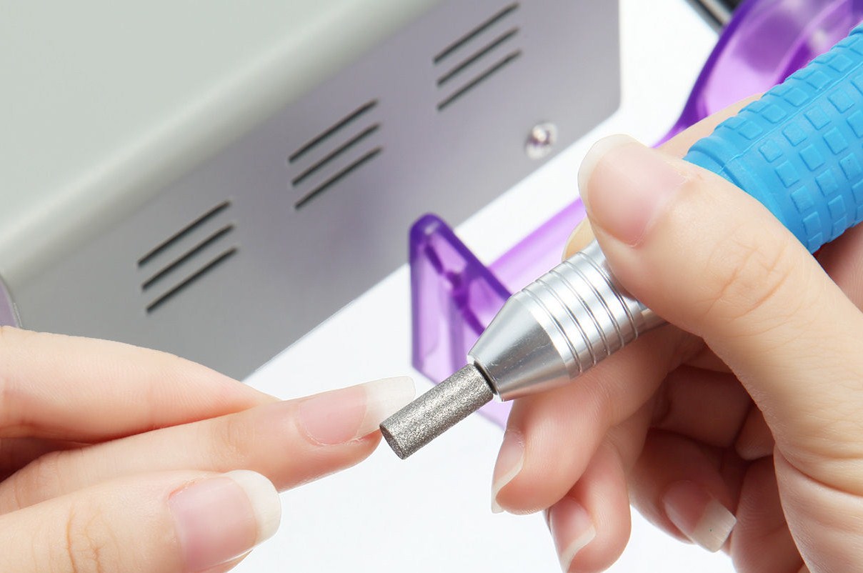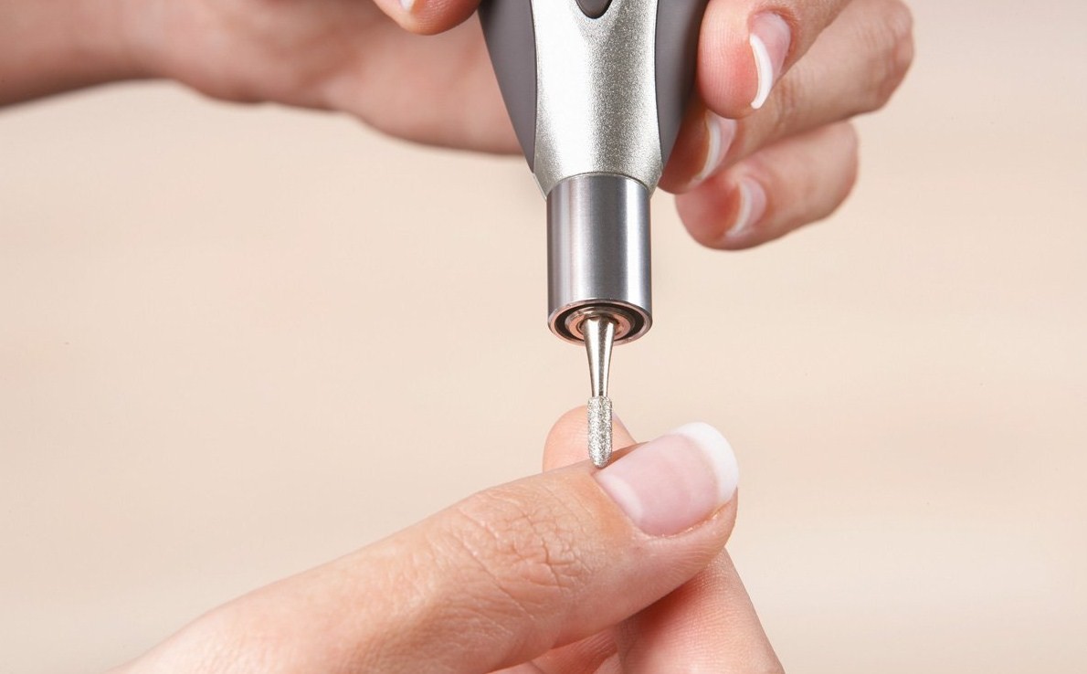 Пулевидной фрезой «Акула» снимается наращенный гель с типсом