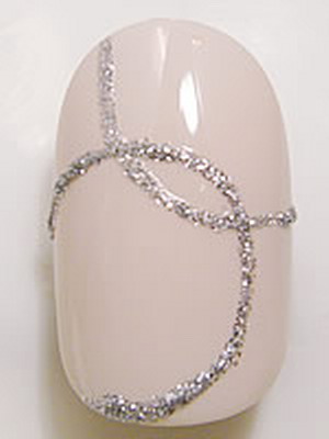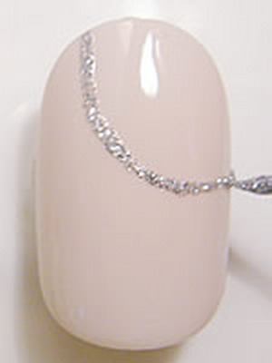 При помощи пинцета захватить жемчужное ожерелье и установить его на влажном лаке, чтобы оно скрыло границу. Для лучшего закрепления прижать ожерелье к ногтю. Лишнее ожерелье откусить щипчиками.