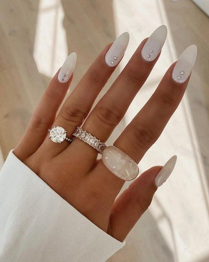 Обладательницам длинных ногтей подойдет любой свадебный дизайн. Главное, не забывать о тренде сезона — лаконичности и простоте.