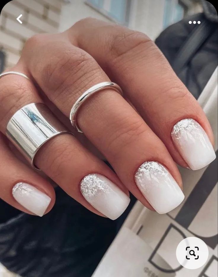 Оставьте белые кончики классического френча обладательницам длинных ногтей. Прокрасьте край серебристым лаком с эффектом хрома или обработайте блестящей втиркой.