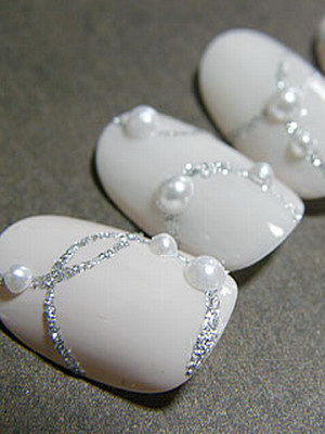 Дизайн ногтей на свадьбу «Жемчужное ожерелье»
