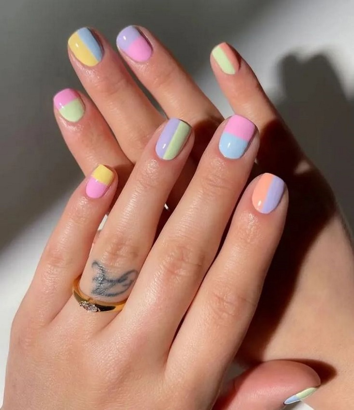 Комбинируйте разные оттенки на ногтях, ведь короткая длина — идеальная основа такого маникюра.