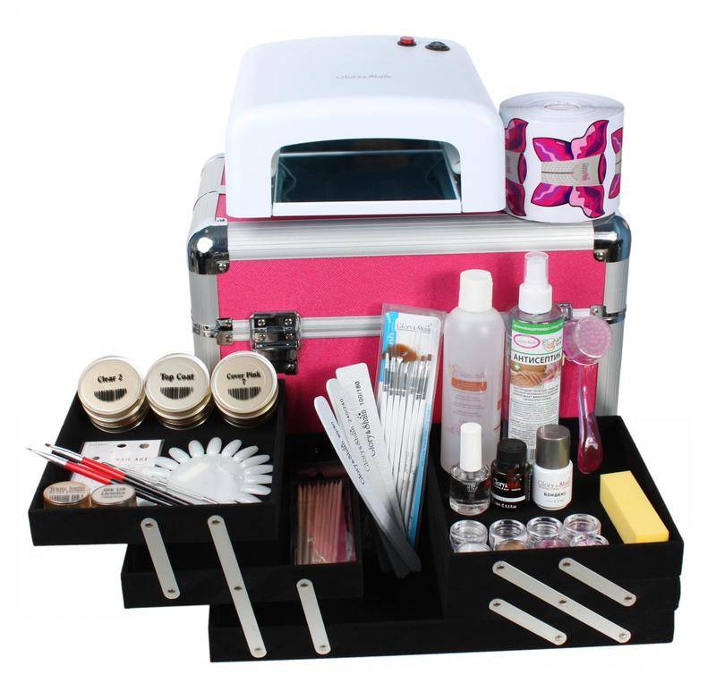 Прежде чем приступать к наращиванию ногтей гелем в домашних условиях, нужно запастись необходимым инвентарем. Хорошим вариантом будет заказать стартовый набор, в него входит все необходимое, и материалы представлены одной фирмой, что является большим плюсом. Но можно избрать сложный путь и собирать набор самостоятельно. В него входят инструменты: