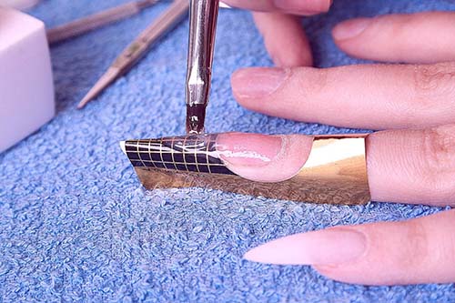 Но в наше время специалистам удается обойтись без использования типсов. Они прикрепляют к натуральным ногтям основу из бумаги, на которую наносится акрил. После этого основу отклеивают, когда покрытие станет твердым.