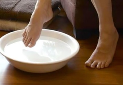 - Погрузите ноги или руки в раствор на 20 минут.
