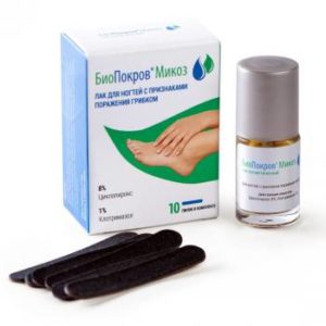 Лак от грибка ногтей Лоцерил и его аналоги — широкого спектра действия, оказывающий воздействие на более десяти видов грибков путем разрушения клеточной мембраны. После первого нанесения Лоцерил в течении суток полностью проникает в пораженный грибком ноготь и сохраняется там в течении 7-10 дней. Отзывы об использовании Лоцерила для лечения грибка в основном положительные.Показания: профилактика и лечение грибковых поражений ногтей.Применение: Лак наносят на пораженные ногти 1 -2 раза в неделю. С помощью одноразовой пилки сначала следует удалить пораженные участки, потом смоченным спиртом тампоном протирают поверхность, это проделывать перед каждым повторным нанесением лака. Лечение должно быть непрерывным в течение 6 мес (ногти на руках) или 9–12 мес (ногти на ногах).Противопоказания: гиперчувствительность, дети раннего возраста.Побочные действия: возможен дискомфорт из-за жжения в местах нанесения. | |