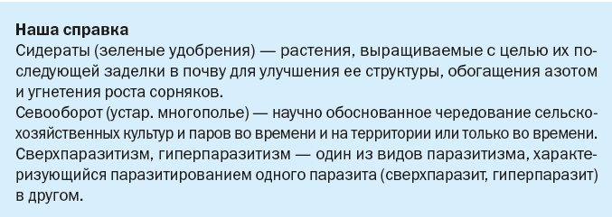 Биологические системы защиты растений защиты подразумевают множество профилактических мер: оптимальные севообороты, залужение, использование сидеральных культур и биопрепаратов на основе гиперпаразитов возбудителей болезней и вредителей сельскохозяйственных культур.