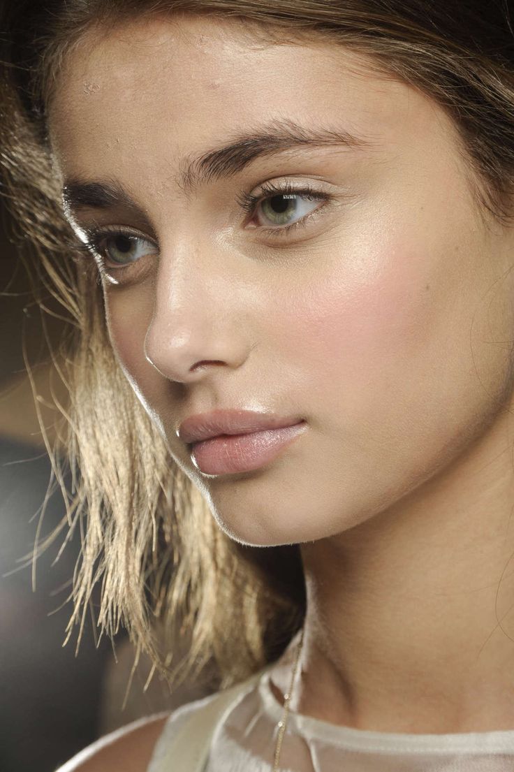 - Яркие румяна не сочетаются с понятием нюд, а их полное отсутствие в макияже оставляет на лице эффект чистоты.
