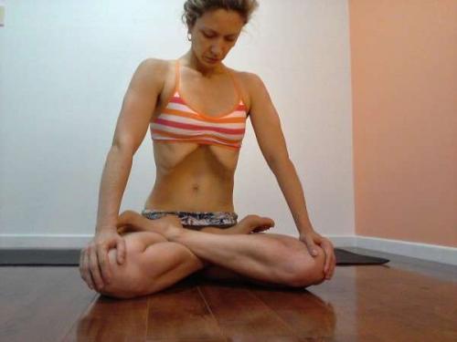 По мере освоения практики можно принимать более удобные положения – сидя на коленях с ягодицами на пятках или в положении со скрещенными ногами