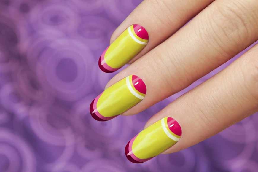 - Чтобы ваш маникюр был ярким и насыщенным, лучше использовать однотонный белый лак в качестве основы под него. Покрытие должно быть достаточно плотным, поэтому жидкий лак можно наносить в два слоя. Если хотите получить менее яркие пастельные цвета, то в качестве основы нужно взять лак телесного оттенка. Лаковое покрытие должно хорошо высохнуть.